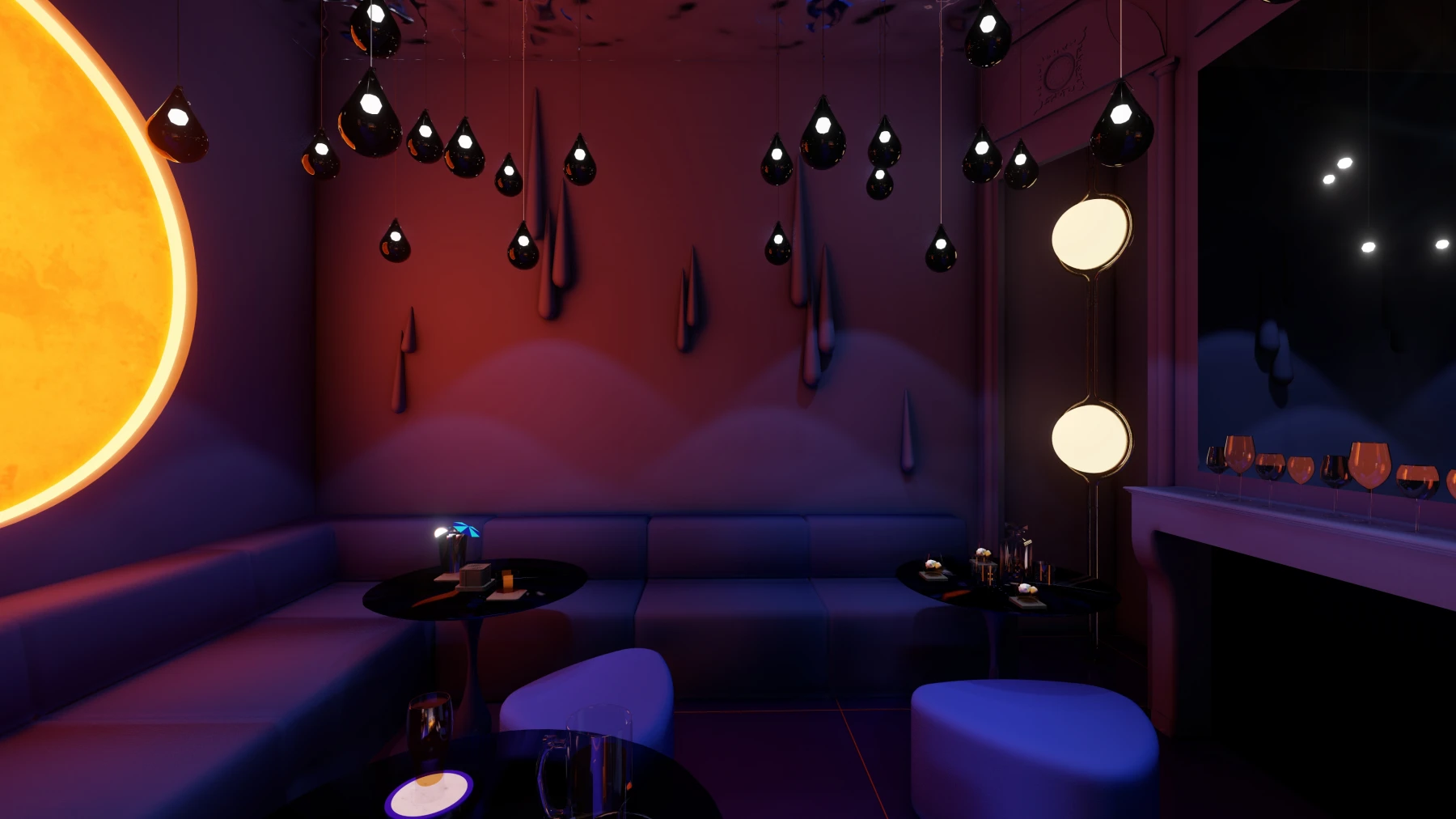 Au rez-de-chaussée, le visiteur est naturellement guidé vers le comptoir central, avant de découvrir une arrière-salle feutrée, intime et privatisable. Le sous-sol, quant à lui, propose un espace modulable où le mobilier peut être déplacé pour s’adapter à différentes ambiances festives.